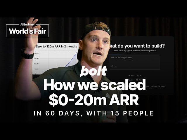 Learn how to build and scale a startup with a tiny team through this conference talk where CEO Eric Simons reveals the strategies behind Bolt.new's extraordinary growth from $0 to $20 million ARR in just 60 days with only 15 people. Discover the key principles of tiny team culture, effective decision-making processes, strategic tooling choices, and the relentless grit required to achieve rapid scaling. Explore insights from the second fastest-growing product in history and understand how small, focused teams represent the future of startup development. Gain practical knowledge about maintaining high performance and velocity while operating with minimal resources, and learn the specific approaches that enabled this remarkable achievement in the competitive tech landscape.