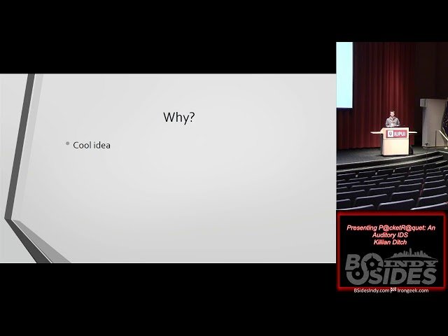 Explore an innovative approach to network security with this BSidesIndy 2018 conference talk on PcketRquet, an auditory Intrusion Detection System. Discover why this unique concept was developed, its functionality, and how it transforms TCP dumps into sound. Learn about the testing process, baseline sound establishment, and known issues. Gain insights into future plans for PcketRquet and potential challenges. Engage with the presenter, Killian Ditch, as he concludes the talk and addresses audience questions and comments.