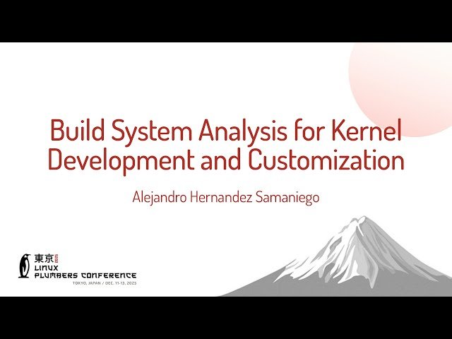 Explore kernel development workflows and customization capabilities across different build systems in this conference talk from the Linux Plumbers Conference. Analyze the critical decision-making process for selecting appropriate build systems when creating custom Linux operating systems, focusing specifically on kernel development requirements and constraints. Examine the complete kernel development flow including building customized versus vanilla kernels, kernel configuration management, compilation of both in-tree and out-of-tree kernel modules, and integrated kernel testing functionality within various build systems. Compare and contrast the strengths and weaknesses of different build system approaches to kernel customization, while identifying opportunities for cross-system learning and development cycle improvements. Gain insights into how product requirements, development preferences, and technical constraints influence build system selection for tailored Linux OS creation.