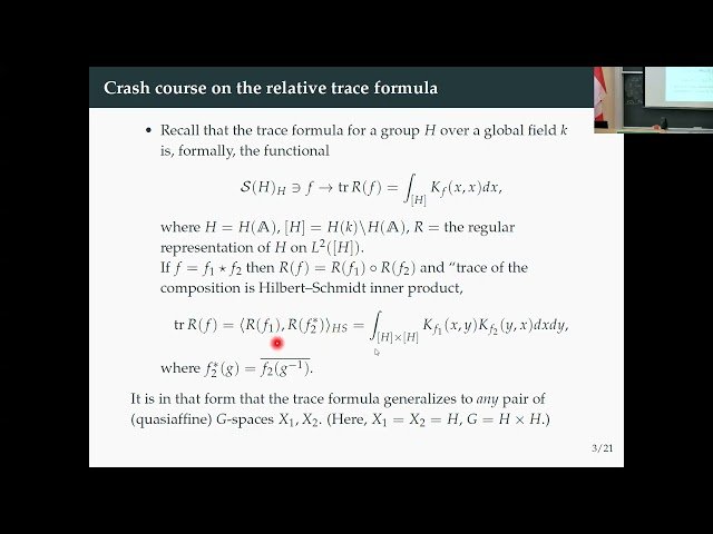 Learn advanced techniques in automorphic forms and representation theory through this mathematical lecture that compares the Arthur-Selberg trace formula with the Kuznetsov formula for GL(n) and explores methods for separating the residual spectrum. Discover the intricate relationships between these fundamental tools in analytic number theory and their applications to understanding the spectral decomposition of automorphic forms. Examine the technical challenges involved in establishing correspondences between different trace formulas and gain insights into how these comparisons can illuminate the structure of the residual spectrum. Explore the theoretical framework that underlies these comparisons and understand their significance in the broader context of the Langlands program and automorphic representation theory.