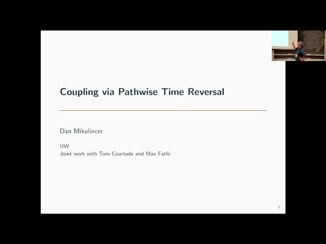 Learn about pathwise time reversal techniques in optimal transport theory through this 35-minute conference talk delivered by Dan Mikulincer from the University of Washington at the Fields Institute. Explore advanced coupling methods that utilize time reversal properties in stochastic processes, examining how these techniques apply to optimal transport problems and their connections to projections and other applications. Discover the mathematical foundations of pathwise time reversal and its role in modern optimal transport theory, gaining insights into cutting-edge research developments in this specialized area of mathematics. Access detailed abstract information and connect this presentation to the broader context of optimal transport applications in stochastics and projections.