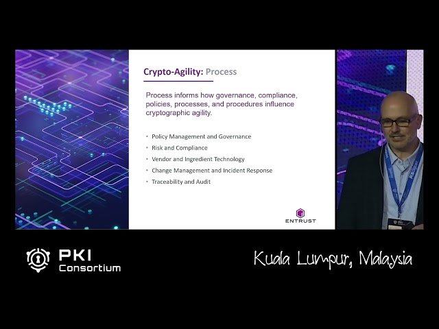 Learn about crypto agility as both a critical security component and complex organizational challenge in this 27-minute conference talk from the PKI Consortium. Explore the urgent need to prepare for quantum threats and transition from traditional cryptography to post-quantum cryptography (PQC), which will impact virtually every cryptographic system and infrastructure component. Discover how organizations can gain visibility into their cryptographic estate including hardware, software, keys, certificates, and secrets while building essential crypto-agility capabilities. Understand that crypto-agility extends far beyond simply switching algorithms or systems - it encompasses people, processes, and technology working together to visualize cryptographic assets, implement policies, and drive compliance. Examine the detailed elements required to achieve a mature crypto-agile security practice and learn strategies to overcome implementation challenges. Gain insights from industry experts on defining crypto-agility for your specific organizational context and developing comprehensive approaches to cryptographic modernization in preparation for the quantum computing era.