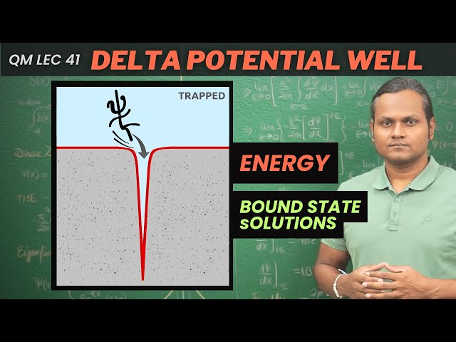 Explore the quantum mechanical solution for a particle trapped in a Dirac delta potential well through this comprehensive 48-minute physics lecture. Begin with an introduction to the Dirac delta function and its mathematical properties before setting up the delta potential well problem. Derive the bound state eigenfunction solutions step-by-step, analyzing how a quantum particle experiences confinement at a single point in space through an infinitely narrow, infinitely deep potential. Calculate the energy eigenvalues for the bound state and understand how this unique system demonstrates quantum confinement principles. Complete the analysis by working through the normalization process for the wavefunctions. Gain insights into probability densities, wavefunction behavior, and the fundamental nature of quantum mechanics through this classic example that reveals how bound states can emerge from the simplest potential configurations.