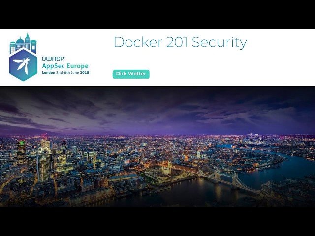 Explore Docker security best practices in this conference talk from OWASP AppSec EU 2018. Delve into the advantages of Docker containers for developers, including their fit in software development processes and ability to enable fast, reproducible deployments across test and production environments. Learn about the security benefits Docker offers when properly implemented, as well as common pitfalls to avoid. Discover a Top 10 list of Docker security bullet points covering essential Do's and Don'ts, advanced techniques for tightening security, and methods to assess Docker and Kubernetes security status. Gain practical insights based on real-world customer experiences and solid network and systems security expertise to enhance your Docker implementation's security posture.