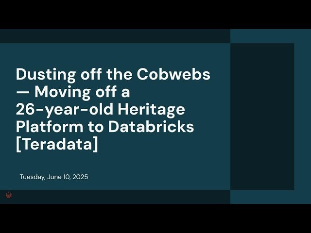 Learn how to modernize legacy data infrastructure through this 37-minute conference talk that chronicles the journey of migrating from a 26-year-old heritage platform to Databricks. Discover the challenges, strategies, and best practices involved in transitioning from traditional Teradata systems to modern cloud-based data platforms. Explore the technical considerations, architectural decisions, and organizational changes required when moving away from decades-old legacy systems. Gain insights into overcoming common obstacles during large-scale data platform migrations, including data migration strategies, performance optimization, and ensuring business continuity throughout the transition process. Understand the benefits and transformative impact of adopting modern data platforms while learning from real-world experiences of organizations that have successfully completed similar migrations.