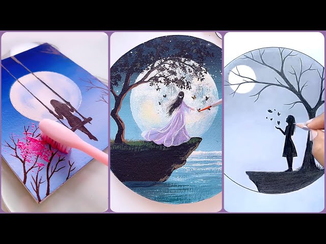 Easy 11 scenery painting ideas || Alone Girl in the beautiful moonlit night || Best ART HACKS