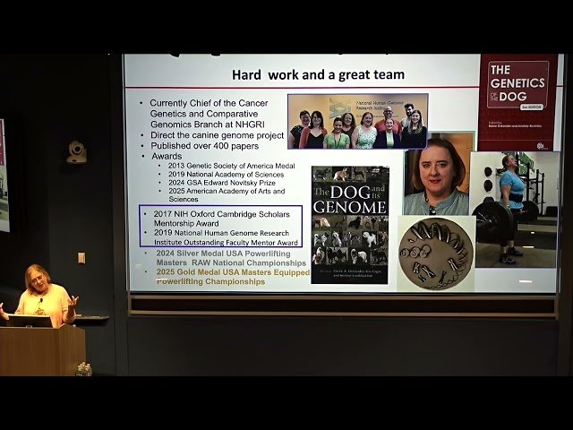 Explore the fascinating world of canine evolution and genetics in this 54-minute Presidential Lecture that delves into how humans have shaped dog breeds through selective breeding and what genomic research reveals about our four-legged companions. Discover the evolutionary journey from wild ancestors to modern breeds, examining the genetic factors that contribute to the remarkable diversity in appearance, behavior, and health predispositions observed across different dog breeds. Learn about cutting-edge genomic studies that illuminate breed-specific disease susceptibilities and the molecular mechanisms underlying the striking phenotypic differences between breeds. Gain insights into the intersection of evolution, genomics, and genetics as researchers work to unravel the complex relationship between human intervention and canine development, providing a comprehensive understanding of how selective breeding has created the incredible variety of dogs we see today.