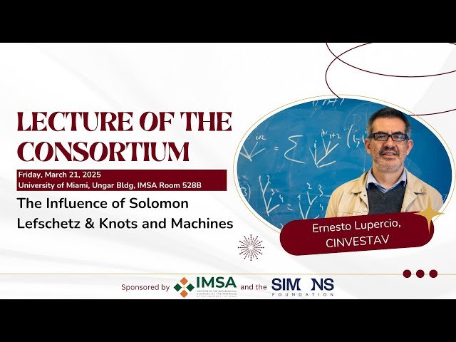 This lecture series features two talks by Dr. Ernesto Lupercio from CINVESTAV, scheduled for Friday, March 21, 2025, from 3pm-5pm at Ungar Building, Room 528B. The first talk explores Solomon Lefschetz's mathematical contributions and institutional leadership in the 20th century, highlighting his profound influence on Latin American mathematics, his direct impact, and the lasting legacy of his initiatives. The second talk presents a progress report on ongoing research at the intersection of knot theory and machine learning, discussing recent developments, challenges, and potential implications of applying computational techniques to problems in knot theory.