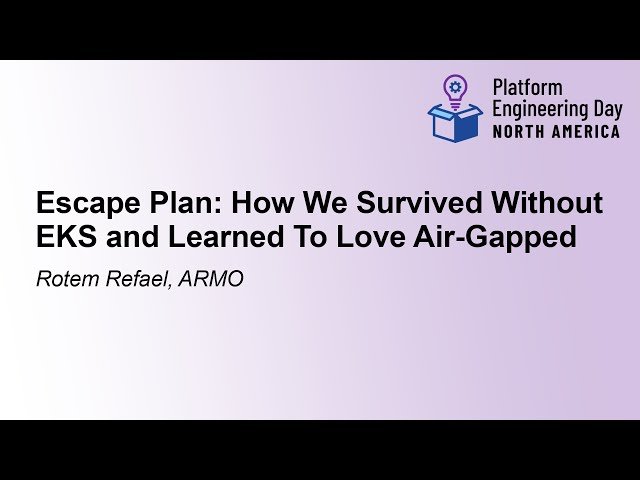 Learn how to migrate a production SaaS platform from Amazon EKS to a fully air-gapped Kubernetes environment in this 21-minute conference talk. Discover the challenges and solutions involved in replacing managed cloud services with open source, cloud-native alternatives when running Kubernetes in restricted environments. Explore the complete overhaul required for identity management, observability, networking, secrets management, and storage systems when moving away from AWS dependencies. Gain insights into maintaining developer experience while building more secure, resilient, and portable platforms. Understand the practical lessons learned from rebuilding key platform functions using tools that work in disconnected environments. Examine the wins, regrets, and surprises encountered during this migration process, with honest takeaways about designing systems for freedom rather than vendor lock-in. Perfect for those building platforms for regulated, restricted, or air-gapped environments, or anyone interested in reducing cloud provider dependencies.