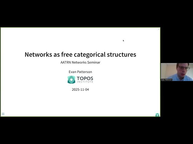 Explore how networks can be understood as freely generated categorical structures in this mathematical lecture that demonstrates the significance of paths between nodes rather than just edges. Learn through diverse examples how this categorical perspective provides a clean mathematical framework for network operations including motif finding and refinement. Discover the practical applications of these theoretical concepts through CatColab, an interactive environment designed for modeling in domain-specific categorical logics, and gain insights into how category theory can enhance your understanding of network analysis and structure.