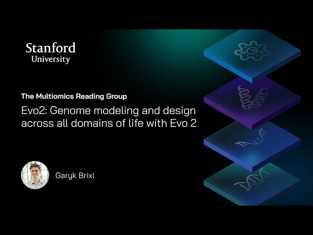 Explore a comprehensive talk by Garyk Brixi from Valence Labs discussing Evo 2, a groundbreaking biological foundation model trained on 9.3 trillion DNA base pairs from a curated genomic atlas spanning all domains of life. Learn about this 7B and 40B parameter model with its unprecedented 1 million token context window and single-nucleotide resolution. Discover how Evo 2 accurately predicts functional impacts of genetic variation without task-specific fine-tuning, autonomously learns biological features like exon-intron boundaries and transcription factor binding sites, and generates mitochondrial, prokaryotic, and eukaryotic sequences with greater naturalness than previous methods. The talk covers how Evo 2's inference-time search enables controllable generation of epigenomic structure and discusses the open-source availability of the model parameters, training code, inference code, and the OpenGenome2 dataset to accelerate biological complexity exploration and design. Connect with the speaker and AI drug discovery community through the Valence Labs portal.