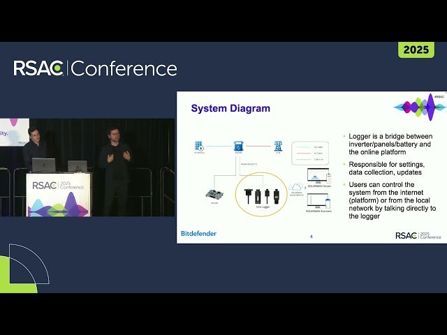 Discover critical security vulnerabilities in large-scale off-grid solar systems through this 40-minute conference talk from RSA Conference. Learn how Dan Berte and Alexandru Lazar from Bitdefender uncovered stunning vulnerability findings in leading solar manufacturers' management platforms that pose significant national security risks when exploited. Explore three massive vulnerabilities and understand how they can be weaponized to threaten grid stability and national infrastructure security.