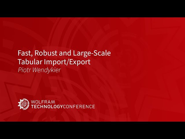 Learn efficient techniques for handling large-scale data import and export operations in Wolfram Language 14.2 through a 32-minute technical talk. Master working with the Tabular object and explore newly supported formats including Parquet, ArrowIPC, and ORC. Discover significant improvements to CSV handling and gain practical knowledge for optimizing data science workflows when dealing with large datasets.