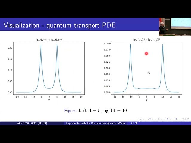 Learn about the Feynman formula approach to quantum walks in this 21-minute conference talk delivered by Ka Lok Lam from UC Santa Barbara at the Fields Institute's Workshop on the Use of Quantum Algorithms/Formalisms in Finance. Explore the mathematical foundations and applications of Feynman's path integral formulation as it applies to quantum walk systems, gaining insights into how this powerful theoretical framework can be utilized to understand and analyze quantum mechanical processes in discrete time and space. Discover the connections between classical random walks and their quantum counterparts through the lens of Feynman's formalism, and understand how this approach provides a unique perspective on quantum computation and its potential applications in financial modeling and algorithmic trading.