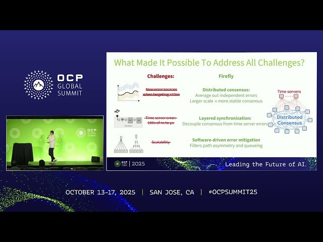 Learn about Firefly, a software-driven datacenter clock synchronization system that achieves sub-10ns device-to-device accuracy for cloud-based financial exchanges in this 19-minute conference talk by Google Software Engineer Yuliang Li. Discover how this innovative system addresses the critical challenge of maintaining Coordinated Universal Time (UTC) synchronization across datacenter infrastructure while overcoming limitations of existing clock sync techniques that struggle with clock drift, jitter, and path asymmetries. Explore Firefly's distributed consensus algorithm operating on a random overlay graph that enables rapid convergence to common time through gradual hardware clock adjustments. Understand the novel layered synchronization technique that decouples internal and external synchronization processes, allowing consistent sync-to-UTC across devices while maintaining stable device-to-device internal sync. Examine real-world performance results from a 248-machine Clos network deployment demonstrating sub-10ns device-to-device synchronization, ≤1µs device-to-UTC synchronization, and system resilience against time server failures and unstable clocks, making this solution both scalable and cost-effective for demanding datacenter environments.
