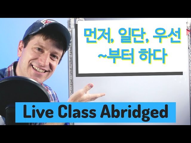 Learn the various Korean expressions for "first" in this 13-minute abridged live class lesson. Master the differences between 먼저, 일단, 우선, and the grammatical form ~부터 (하다), along with 처음, understanding when and how to use each expression appropriately in Korean conversation and writing.