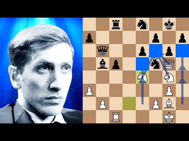 This chess video analyzes a brilliant 1957/58 U.S. Chess Championship game between young Bobby Fischer and 4-time New York State Champion Arthur Feuerstein. Examine Fischer's methodical dark-square strategy in the King's Indian Attack, where he follows a clear blueprint: establishing a pawn on e5, pushing his h-pawn to h6 to create a weakness on f6, and then targeting that square with multiple pieces. The 12-minute analysis demonstrates this simple yet powerful approach that led Fischer to victory. The video includes the complete PGN notation of the game and is presented by a self-taught National Master from Pennsylvania who shares chess knowledge to help players improve their understanding of strategic concepts.
