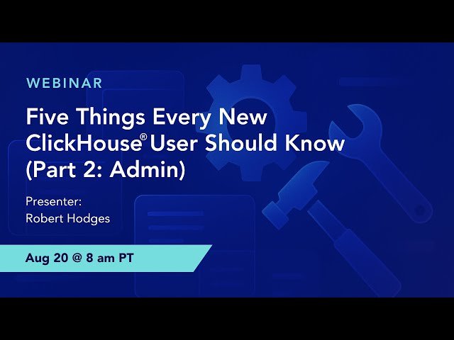 Learn essential ClickHouse administration skills in this webinar covering five critical topics for maintaining healthy and fast production applications. Discover best practices for deploying production systems, managing replicated tables effectively, implementing schema modifications without disruption, upgrading ClickHouse versions safely, and troubleshooting server issues when problems arise. Gain insights from experienced engineers who have helped thousands of users successfully run ClickHouse at scale, with dedicated time for addressing questions and real-world scenarios. Master the administrative fundamentals needed to operate ClickHouse applications reliably in production environments.
