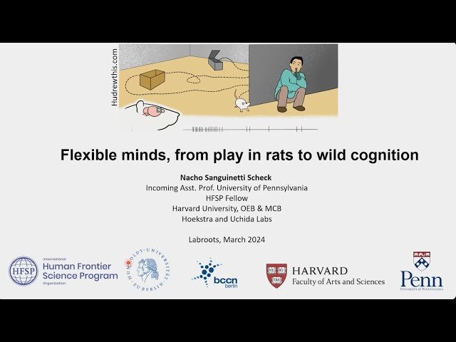 Explore groundbreaking research on mammalian play behavior and its neural foundations through an innovative neuroscience approach in this 30-minute webinar. Discover how researchers developed a novel "Hide and Seek" behavioral paradigm with rats in a large-scale naturalistic environment, moving beyond traditional laboratory constraints to study animal cognition in more authentic settings. Learn about the strategic gameplay behaviors rats exhibited, their spontaneous development of game-specific vocalizations, and how wireless recording technologies enabled unprecedented insights into brain-behavior relationships. Examine the revolutionary methodology of using unsupervised clustering of neural population data to uncover unexpected neural-behavioral associations without experimental bias. Understand how this research challenges the field's reliance on inbred animal models in artificial settings and establishes foundations for studying wild animal cognition using advanced neurotechnologies. Gain insights into the broader implications for naturalistic neuroscience research and the potential for extending these methodologies to study animal behavior and neural activity in wild environments.