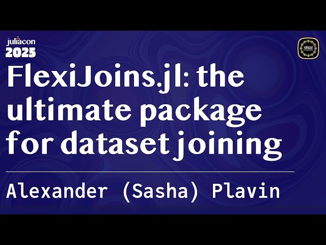 Explore the design and capabilities of FlexiJoins.jl, a comprehensive Julia package engineered to be the most flexible and generic solution for dataset and table joining operations. Learn how this 25-minute conference talk demonstrates the package's ability to handle a wide range of join conditions beyond simple equality, including intervals, ranges, and arbitrary distance measures, all through a uniform interface that leverages Julia's multiple dispatch system. Discover how FlexiJoins supports various join options such as finding all matches or closest matches, performing left or right joins, and producing flat results or grouped outputs. Understand the package's compatibility with diverse dataset types including Julia collections like Vectors and Dictionaries, specialized table types such as DataFrames, and experimental SQL database support through SQLCollections.jl. Examine the underlying design principles that enable such flexibility while maintaining performance through asymptotically optimal algorithms using hash-based, sort-based, and tree-based approaches that avoid falling back to naive O(n²) operations. Gain insights into the package's current applications across various scenarios and learn about potential future enhancements, including heuristics for specific cases to compete with heavily optimized specialized join implementations.