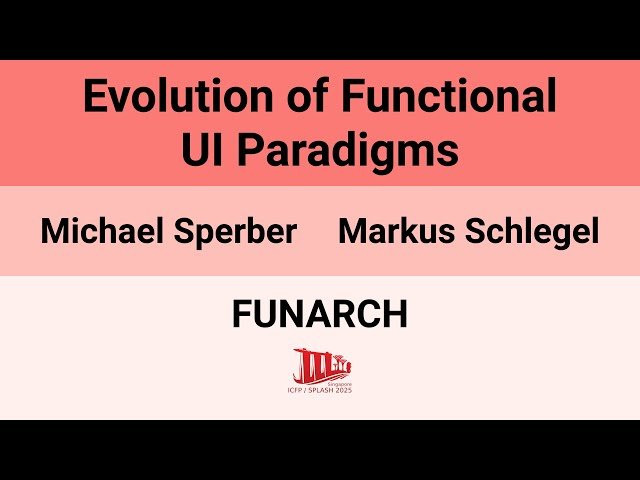 Explore the evolution of functional programming paradigms in user interface development through this 43-minute conference presentation from FUNARCH 2025. Trace the progression from early stream-based approaches and monad-based toolkits that mimicked object-oriented practices to modern model-view-update frameworks. Discover how transitioning from the classic Model-View-Controller pattern to functional approaches dramatically reduces coupling while improving maintainability and testability. Learn about the architectural implications of various functional UI toolkit designs, including insights from the presenters' own implementations. Examine the current state of the art in functional UI programming and understand the ongoing challenges in achieving good modularity with functional approaches. Gain valuable perspectives on software architecture patterns specifically applied to graphical user interfaces from experts Michael Sperber and Markus Schlegel of Active Group, Germany.