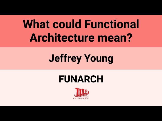 Explore the nebulous concept of functional architecture in this 24-minute conference talk from the FUNARCH 2025 workshop. Delve into speculative definitions of what functional architecture could mean, given that software architecture itself lacks clear boundaries. Examine various interpretations and possibilities for defining functional architecture through wild speculation and theoretical exploration. Consider how functional programming principles might intersect with architectural design patterns and software system organization. Gain insights into emerging concepts at the intersection of functional programming and software architecture from a perspective that acknowledges the inherent ambiguity in both domains.