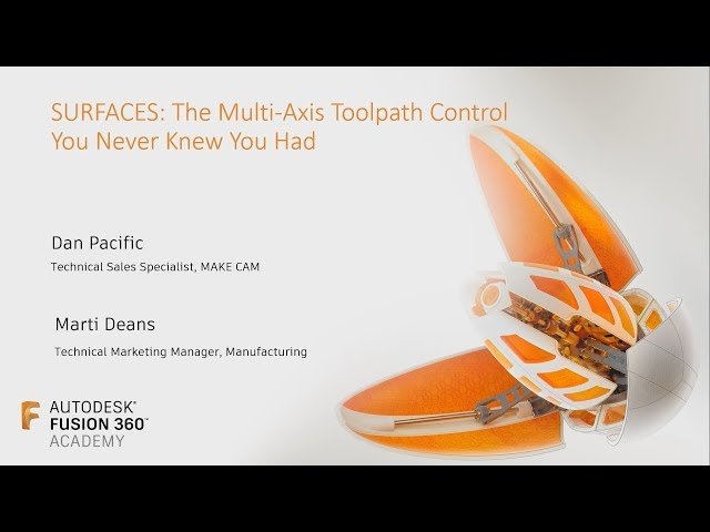 Explore advanced multi-axis tool path control techniques in this 56-minute Fusion Academy refresher session. Learn to leverage patch surfaces, check surfaces, drive surfaces, and ISO Lines for optimizing multi-axis strategies in Fusion 360. Dive into 3D surfacing concepts and their application in manufacturing environments, focusing on designing better multi-axis tool paths from the ground up. Discover how to control tool engagement in multi-axis applications through practical examples, moving from basic concepts to advanced surface manipulation techniques. Gain insights into patch tools, continuity, drive check surfaces, tool path styles, UV curvature, and surface transitions to enhance your manufacturing workflow.