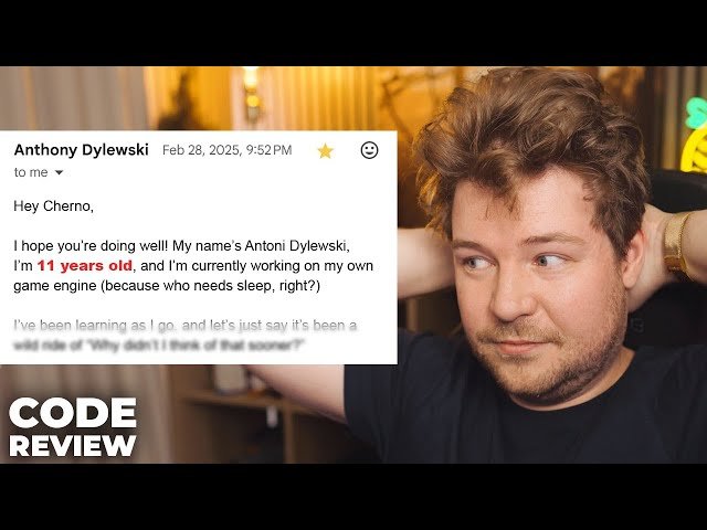 In this 39-minute code review video, explore an impressive game engine created by an 11-year-old developer. Join The Cherno as he analyzes the young programmer's work, providing expert insights and constructive feedback on the engine's architecture, implementation, and potential improvements. Discover how this remarkable young talent approached game engine development and learn valuable programming concepts that can be applied to your own projects. The video showcases the capabilities of young developers and demonstrates that age is not a barrier to creating sophisticated software like game engines.