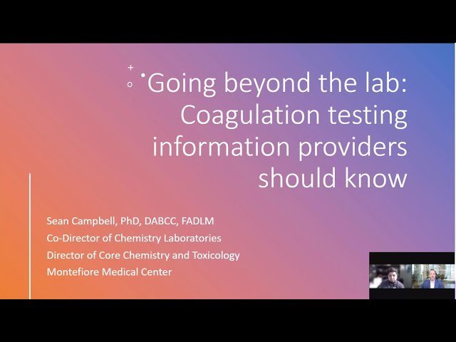 Learn about essential coagulation testing information in this 52-minute webinar presented by Dr. Sean T. Campbell, Assistant Professor of Pathology at Albert Einstein College of Medicine and Director of Clinical Chemistry and Immunology Laboratories at Montefiore Medical Center. Explore how hospital laboratories conduct tests for patients with various disease states and understand the critical role of medical laboratory professionals in providing vital information to healthcare providers. Gain insights into test methodologies, potential interfering substances, best practices for sample collection, and other crucial details that bridge the knowledge gap between laboratory professionals and healthcare providers with different educational backgrounds. Earn PACE credits upon completion while expanding your understanding of coagulation testing in clinical settings.