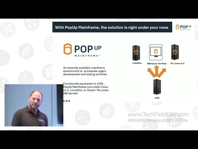 Learn how to accelerate mainframe software delivery using IFL (Integrated Facility for Linux) and Linux environments through PopUp Mainframe's innovative virtualization platform in this 36-minute conference presentation. Discover how to overcome common mainframe development bottlenecks including environment availability constraints, siloed team structures, and inflexible tooling that traditionally slow software delivery cycles. Explore PopUp Mainframe's capability to provision virtual mainframe environments in under 10 minutes across diverse hardware configurations, from IFLs and LinuxONE on IBM Z systems to cloud-hosted and x86 environments. Master the platform's automated provisioning, rollback, and snapshot capabilities through FastTrack features that enable rapid, repeatable testing and development workflows. Understand how running on IFLs delivers 5-10x performance gains versus x86 platforms while leveraging z/Architecture power and maintaining complete separation from production workloads. Examine the floating license model that allows dormant environments to activate only when needed, supporting deployment in air-gapped environments or cloud infrastructure where compute capacity already exists. Analyze security and compatibility features including pre-integration with IBM, BMC, and open-source tools, plus support for Broadcom and Rocket Software ecosystems. Learn how the platform maintains full ZOS compatibility regardless of code age or complexity, from modern subsystems to legacy stacks. Discover integration capabilities with modern development tools like VS Code, Galasa, and COBOL Check that extend DevOps practices to mainframe environments, enabling continuous integration and delivery. Explore how persistent ZFS snapshots achieve 90% disk compression while utilizing commodity storage instead of expensive DASD, and understand how organizations can quadruple delivery speed, reduce emissions, lower costs, and improve compliance through centralized masking and on-Z data governance.
