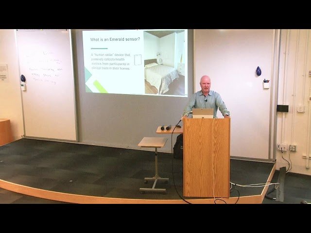 Explore the Emerald system, a groundbreaking technology that combines wireless sensing and machine learning for touchless health monitoring in this conference talk. Learn how this innovative system uses low-power radio signals transmitted from a home device to record reflections and process the data through cloud-based neural network algorithms. Discover how the technology can infer human movements, breathing patterns, heart rates, and sleep stages without requiring individuals to wear any sensors. Understand the system's capability to continuously monitor physiological signals over months to automatically detect changes in health conditions. Examine the underlying wireless sensing technology and neural network processing methods that enable this non-invasive monitoring approach. Review practical applications of the Emerald system in clinical drug trials and see real-world examples of how continuous, touchless health monitoring can be implemented in residential settings.