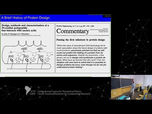 Join the first class of the ICTP-SAIFR School on Biological Physics and Biomolecular Simulations in the Machine Learning Era, where Helder Ribeiro from CNPEM/Campinas delivers a 53-minute lecture on Machine Learning for Functional Protein Design. Learn about cutting-edge approaches that combine computational methods with machine learning to create proteins with specific functions. This lecture is part of a specialized school scheduled for April 14-19, 2025, bringing together experts in the emerging field where biological physics meets artificial intelligence.