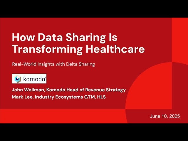 Explore how secure data sharing is revolutionizing healthcare through this 27-minute conference talk from Databricks' Data + AI Summit. Learn how Delta sharing technology enables the life sciences ecosystem to leverage de-identified longitudinal patient data while maintaining strict privacy protections. Discover real-world insights from Komodo Health on how customers are using de-identified patient data to reduce disease burden and enhance patient experiences. Gain practical knowledge about compliant data sharing approaches in life sciences, including operational efficiencies and research breakthroughs. The session features presentations from John Wollman, Head of Revenue Strategy at Komodo Health, and Mark Lee, Industry Ecosystems GTM for Healthcare and Life Sciences at Databricks, who share customer experiences and demonstrate how data sharing unlocks new opportunities for better patient outcomes across the healthcare landscape.