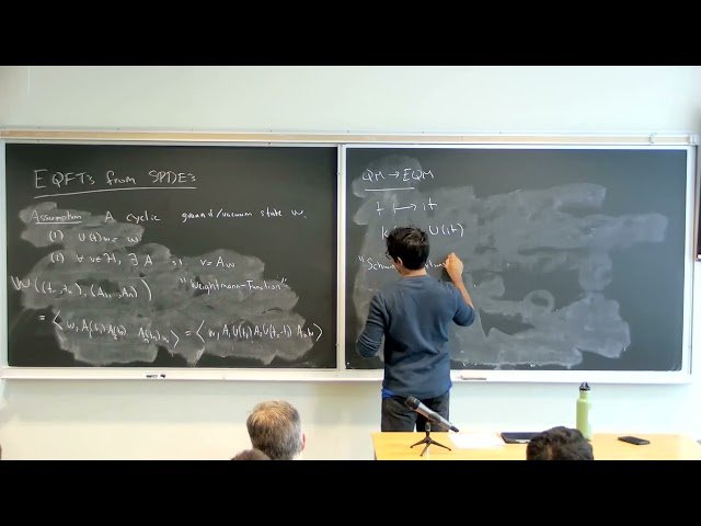 Learn how Stochastic Partial Differential Equations (SPDEs) can be utilized to construct Euclidean Quantum Field Theories in this comprehensive mathematical physics lecture. Explore the theoretical foundations and methodological approaches that connect stochastic analysis with quantum field theory construction, examining how SPDEs provide a rigorous mathematical framework for understanding Euclidean QFTs. Delve into the intricate relationships between stochastic processes, partial differential equations, and quantum field theoretical structures, gaining insights into advanced techniques used in modern mathematical physics research. Discover the applications and implications of this approach for understanding quantum field phenomena through the lens of Euclidean formulations, with detailed mathematical exposition suitable for graduate-level study in mathematical physics or related fields.