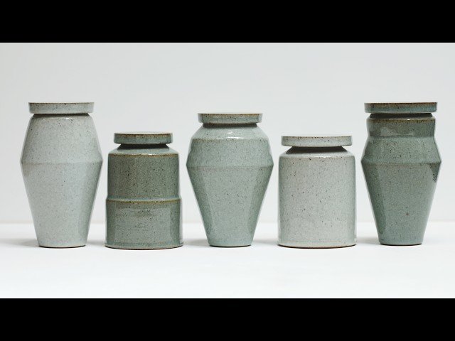 Learn the complete process of creating handmade pottery urns through this comprehensive 37-minute tutorial that covers every step from throwing to finishing. Follow along as you discover the technical aspects of creating six lidded ceramic vessels, starting with throwing both the body and lid components on the pottery wheel. Master the art of trimming these angular forms to achieve clean, precise shapes, then progress through the essential preparation steps for bisque firing at 1000°C. Explore professional glazing techniques specifically adapted for angular pottery forms, including proper waxing of lids, bases, and lips to ensure clean glaze application. Understand the intricacies of loading and firing pieces in a gas kiln using reduction firing methods to reach cone 10 (1290°C), and learn the critical post-firing processes of cleaning bases and grinding lids to achieve perfect fit and smooth operation. Gain insights into the emotional and technical considerations involved in creating these meaningful vessels, along with professional tips for achieving consistent results across multiple pieces in a single batch.