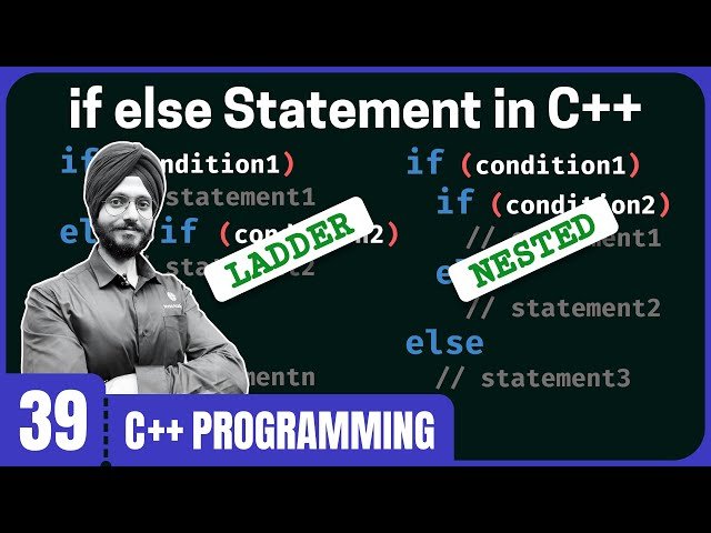 Learn the fundamental conditional programming concepts in C++ through this 17-minute tutorial covering if-else statements, if-else-if ladders, and nested if-else structures. Master how to implement decision-making logic in your C++ programs by understanding the syntax and practical applications of these essential control flow statements. Explore the if-else statement for binary decisions, discover how to chain multiple conditions using if-else-if ladders for complex decision trees, and understand how to create nested if-else statements for handling multi-level conditional logic. Gain hands-on experience with practical examples that demonstrate when and how to use each type of conditional statement effectively in C++ programming.