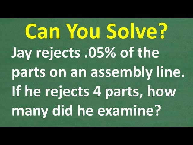 This 12-minute math tutorial tackles a challenging real-world percentage problem: when Jay rejects 0.05% of parts on an assembly line and the total rejected parts equal 4, determine how many total parts were inspected. Learn to set up percentage equations correctly, apply the proportion method for solving percentage problems, and follow a step-by-step breakdown to find the answer. Avoid common mistakes when working with percentages through this clear explanation from TabletClass Math. The video is part of a broader collection of math resources available through TabletClass Math Academy, which offers courses in various math subjects including Math Foundations, Pre-Algebra, Algebra, Geometry, Algebra 2, and Pre-Calculus for middle school, high school, college, test preparation, and teacher certification.