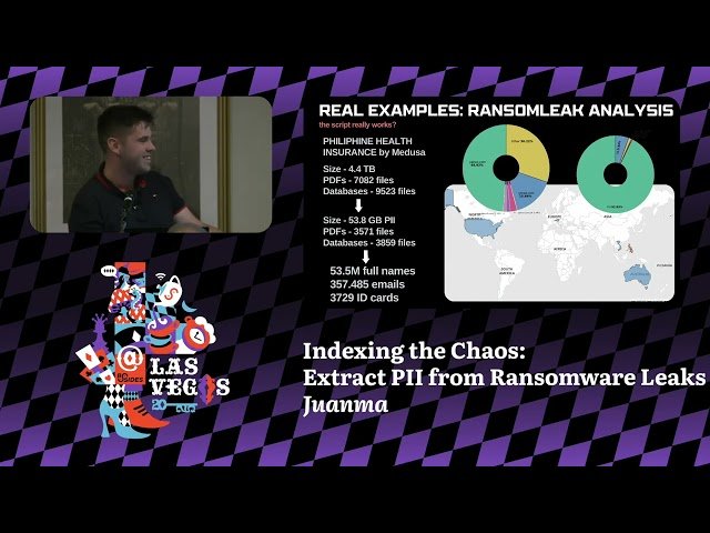 Explore a cybersecurity conference talk that introduces the Have I Been Ransomed? (HIBR) toolchain for processing ransomware leak data. Learn how to use OCR and Large Language Models to extract personally identifiable information from ransomware dumps, while navigating the complex ethical and legal challenges involved in handling such sensitive data. Witness live demonstrations of processing actual ransomware dump data and understand the technical methodologies behind indexing and analyzing leaked information. Gain insights into the intersection of cybersecurity research, data privacy, and the ongoing battle against ransomware attacks through practical examples and real-world applications.
