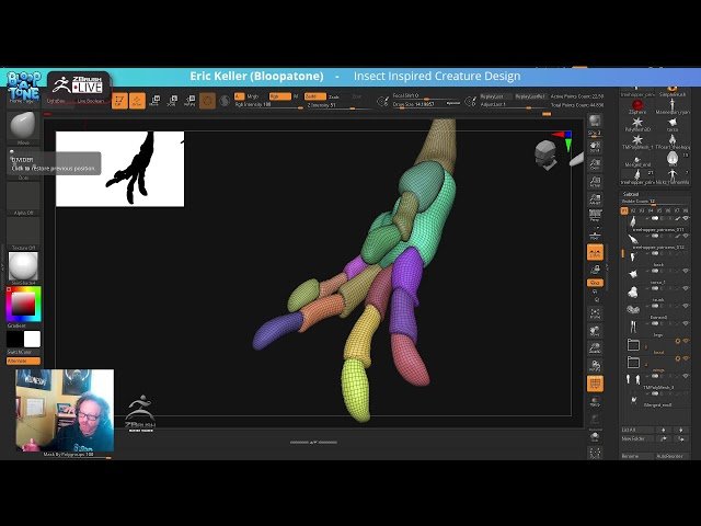 Learn to pose an insect-inspired Treehopper Princess character in this nearly 2-hour ZBrush sculpting session led by Emmy-nominated CG artist and ZBrush Master Trainer Eric Keller. Explore advanced digital sculpting techniques specifically focused on creating and posing creatures inspired by insects and arachnids. Discover professional workflows for character positioning, anatomical considerations for arthropod-based designs, and artistic approaches to bringing fantastical insect characters to life. Gain insights into the creative process of developing unique creature designs that blend realistic insect anatomy with imaginative fantasy elements. Master essential ZBrush tools and techniques for organic modeling while working alongside an industry professional who shares practical tips and artistic decision-making processes throughout the sculpting demonstration.