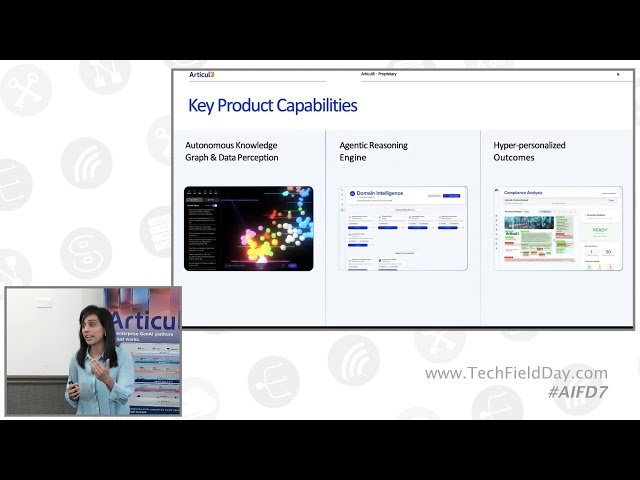 Explore Articul8's enterprise-focused generative AI platform through this 34-minute conference presentation from AI Field Day 7. Learn how the platform delivers secure, domain-specific AI solutions for high-value enterprise use cases through its autonomous data perception functionality that ingests and semantically connects structured and unstructured data—including PDFs, tables, images, and CAD drawings—into a living, schema-aware knowledge graph that serves as institutional memory. Discover the platform's agentic reasoning engine that utilizes hundreds of domain- and task-specific agents to break down complex enterprise missions into sub-missions and autonomously select appropriate agents for each segment, creating a collaborative, context-aware architecture that accelerates tasks like root cause analysis, compliance checks, and network troubleshooting. Examine how hyper-personalization features include adaptive user interfaces and digital twin capabilities that reflect individual user decision styles and enterprise workflows across industries including semiconductor, aerospace, manufacturing, supply chain, and telecommunications. Understand the flexible consumption models available, from full enterprise software platform subscriptions to a la carte agent deployment via AWS Marketplace with per-API-call pricing for specialized agents like LLM IQ for benchmarking and Network Topology Agent for troubleshooting. Review real-world ROI results from production deployments spanning over two years, including semiconductor root cause analysis and CAD validation that reduced processing times from days to hours while achieving over 93 percent detection accuracy, all while maintaining complete data control and auditability within customer security perimeters.