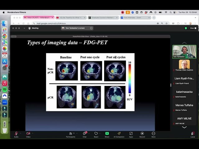Learn about groundbreaking approaches to cancer research in this hour-long lecture from Dr. Thomas Yankeelov of the University of Texas, delivered as part of the Fields Institute's Graduate Course in Mathematical Oncology. Explore the intersection of patient data analysis and mathematical modeling to predict and understand tumor growth patterns. Discover how computational approaches are revolutionizing oncology by combining clinical observations with theoretical frameworks to create more accurate forecasting methods for tumor development. Gain insights into the practical applications of mathematical oncology and its potential impact on personalized cancer treatment strategies.