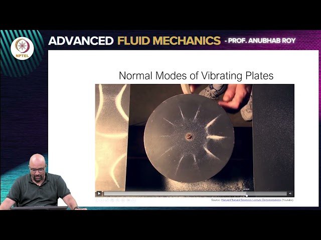Explore the method of normal modes as a fundamental approach to analyzing hydrodynamic stability in this 34-minute lecture. Begin with normal modes in discrete degree-of-freedom systems before extending to continuous systems, enhanced by experimental observations. Learn to represent flow disturbances and perturbations in normal mode form for linear stability analysis, with a detailed examination of plane Poiseuille flow leading to the Orr–Sommerfeld equation derivation. Investigate the Kelvin–Helmholtz instability through Rayleigh equation analysis, then delve into boundary layer instabilities focusing on Tollmien–Schlichting (T–S) waves. Understand the characteristics of disturbances and flow conditions that trigger these instabilities, concluding with guidance for advanced study in hydrodynamic stability theory.
