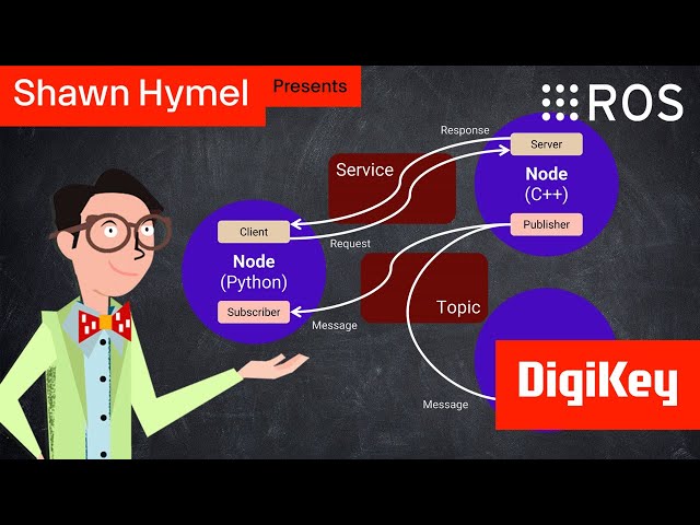 Learn to interact with ROS 2 nodes, topics, and services using command-line tools in this 40-minute hands-on tutorial from Digi-Key's robotics series. Master the fundamentals of ROS node architecture and package structure before diving into practical exercises using a Docker-based ROS 2 Jazzy Jalisco environment. Explore built-in publisher and subscriber nodes, inspect topics with ros2 topic list, and monitor real-time data transmission using ros2 topic echo. Discover how to interact with ROS services by launching service servers, making CLI calls, and inspecting message types with ros2 interface show, while observing seamless communication between Python and C++ nodes. Utilize rqt_graph, a powerful graphical visualization tool, to display node and topic connections in real time for effective debugging and system understanding. Gain essential terminal navigation skills for testing ROS 2 applications and build the foundation needed for creating custom nodes in future episodes, all while working with practical examples that demonstrate the flexibility of ROS 2's messaging system across different programming languages.