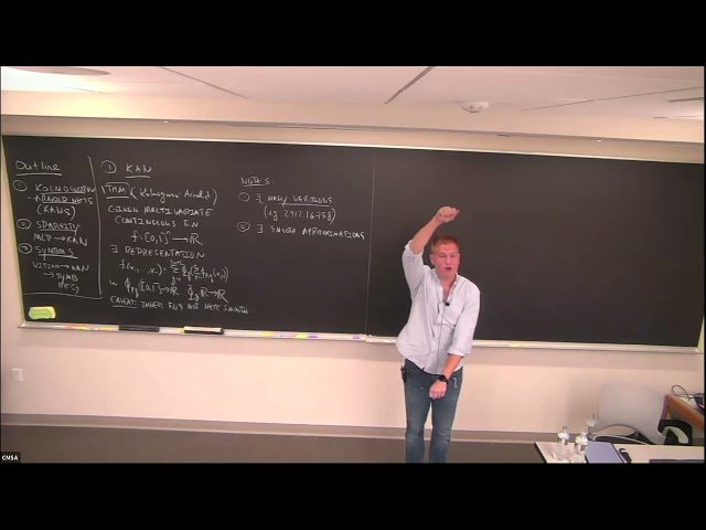 Explore Kolmogorov-Arnold Networks (KANs) through this mathematical lecture that examines their theoretical foundations and practical applications in sparsity and symbolic regression. Review essential results regarding KANs and discover how sparsity masks create connections between deep neural networks and Kolmogorov-Arnold Networks. Learn how KANs can be effectively combined with multimodal language models to perform symbolic regression tasks. Gain insights into both theoretical developments and empirical findings through a presentation that emphasizes mathematical rigor with chalk-based explanations supplemented by key empirical results.