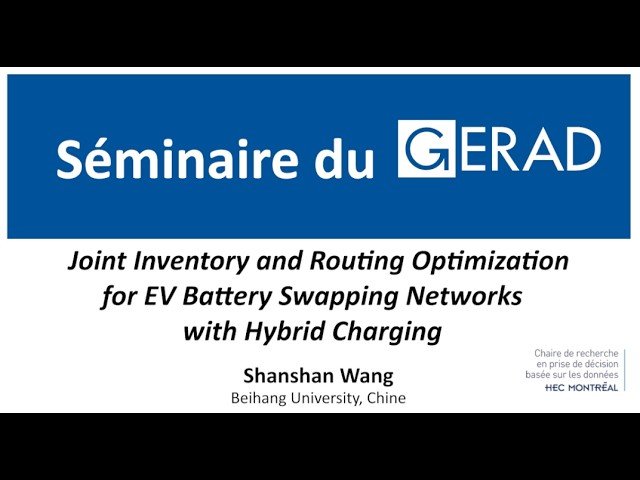 Explore a comprehensive research seminar examining the optimization of electric vehicle battery swapping networks through joint inventory and routing strategies under uncertainty. Learn about a novel two-stage optimization model that addresses the complex logistics of EV battery management systems featuring hybrid charging capabilities, where batteries can be charged either locally at swapping stations or centrally at depot facilities. Discover how the model incorporates stochastic vehicle arrival rates and random battery charging durations while maintaining service-level requirements across multiple stations. Understand the development of closed-form approximations for service-level constraints and the reformulation using second-order cone programming to handle the problem's non-convexity and computational complexity. Examine the proposed branch-and-cut algorithm enhanced with extended polymatroid cuts that improves solution tractability and scalability for real-world applications. Analyze how hybrid charging systems create two-echelon logistics structures with state-dependent flows and their impact on inventory pooling and routing efficiency. Review numerical results demonstrating the operational benefits of hybrid charging approaches and validation of the solution methodology for managing EV battery logistics in urban mobility systems under uncertainty.