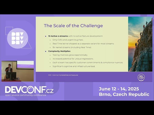 Learn how Red Hat maintains Linux kernel security across multiple Red Hat Enterprise Linux (RHEL) releases in this 35-minute conference talk from DevConf.CZ 2025. Discover the comprehensive process of identifying, tracking, and patching kernel CVEs (Common Vulnerabilities and Exposures) across 10+ z-streams to meet diverse enterprise and compliance requirements. Explore how kernel.org operates as a CVE Naming Authority to identify and publish security vulnerabilities, understand the workflow for filing CVE trackers against active RHEL kernel releases, and gain insights into the challenges faced by Red Hat's Kernel Sustaining Engineering team. Examine the complexities of backporting, testing, and releasing security patches across multiple kernel branches while maintaining compliance with critical standards like FedRAMP that are essential for enterprise customers and partners. Understand the technical and operational considerations involved in supporting legacy RHEL versions while ensuring robust security posture across varied business use cases and regulatory environments.