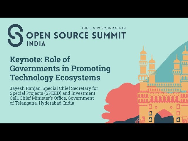 Explore the critical role governments play in fostering technology ecosystems in this 12-minute keynote presentation by Jayesh Ranjan, Special Chief Secretary for Special Projects (SPEED) and Investment Cell at the Chief Minister's Office, Government of Telangana, Hyderabad, India. Discover how government policies, initiatives, and strategic investments can create enabling environments for technological innovation and growth. Learn about practical approaches governments can adopt to support startups, encourage research and development, and build sustainable technology hubs. Gain insights into the Telangana government's experience in promoting technology ecosystems and understand the balance between regulatory frameworks and innovation-friendly policies. Examine the importance of public-private partnerships in driving technological advancement and economic development. This presentation, delivered at the Linux Foundation's Open Source Summit, provides valuable perspectives on how government leadership can accelerate the adoption and development of emerging technologies while creating opportunities for collaboration between public institutions and the technology sector.