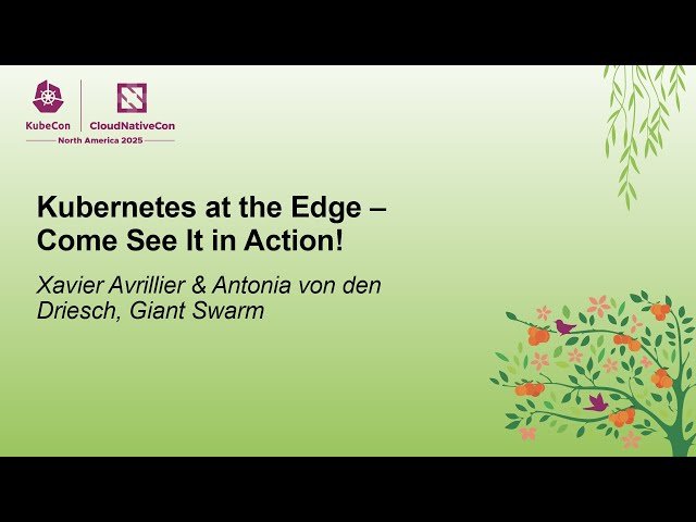 Explore edge computing through a live demonstration featuring Kubernetes deployment on edge devices in this 39-minute conference talk from KubeCon + CloudNativeCon. Watch presenters Xavier Avrillier and Antonia von den Driesch from Giant Swarm showcase a real-time AI detection system using a Raspberry Pi, camera, and Kubernetes cluster connected via KubeEdge. Witness how the edge device identifies raised hands, transmits data to a Kubernetes cluster, and visualizes results instantaneously. Discover the unique challenges of running Kubernetes beyond traditional cloud environments, including connectivity limitations, resource constraints, and security considerations. Learn about KubeEdge's innovative approach to managing decentralized workloads and understand how this technology enables powerful new possibilities across various industries. Gain insights into the convergence of artificial intelligence, Kubernetes orchestration, and edge computing as the presenters demonstrate practical applications of this rapidly growing area in cloud native technology.