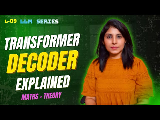 Explore the intricate workings of the Transformer Decoder in this comprehensive 33-minute lecture that breaks down text generation mechanisms token by token. Begin with fundamental concepts including decoder inputs and the Start-of-Sequence (SOS) token, then progress through embeddings and positional encoding applications. Master the step-by-step mechanics of Masked Multi-Head Self-Attention, understanding why masking prevents future token access and how attention scores and probabilities are calculated through softmax operations. Discover the rationale behind multiple attention heads in the decoder architecture and examine the Add & Norm operations that follow masked attention. Learn how Cross-Attention creates crucial connections between the decoder and encoder outputs, enabling effective information transfer. Conclude by understanding the final processing stages where Linear and Softmax layers generate the next token in the sequence. The lecture emphasizes intuitive understanding, mathematical foundations, and tensor shapes, making complex Transformer concepts accessible to newcomers while providing thorough coverage for those seeking deep technical comprehension.