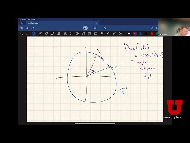 Learn fundamental concepts of distance metrics used in data science through this 80-minute lecture covering metric distances and their mathematical properties, explore L_p distance families including Euclidean and Manhattan distances, understand cosine and angular distance measures for high-dimensional data, discover Mahalanobis distances for handling correlated variables, and examine practical modeling applications of these distance measures in data analysis and machine learning contexts.